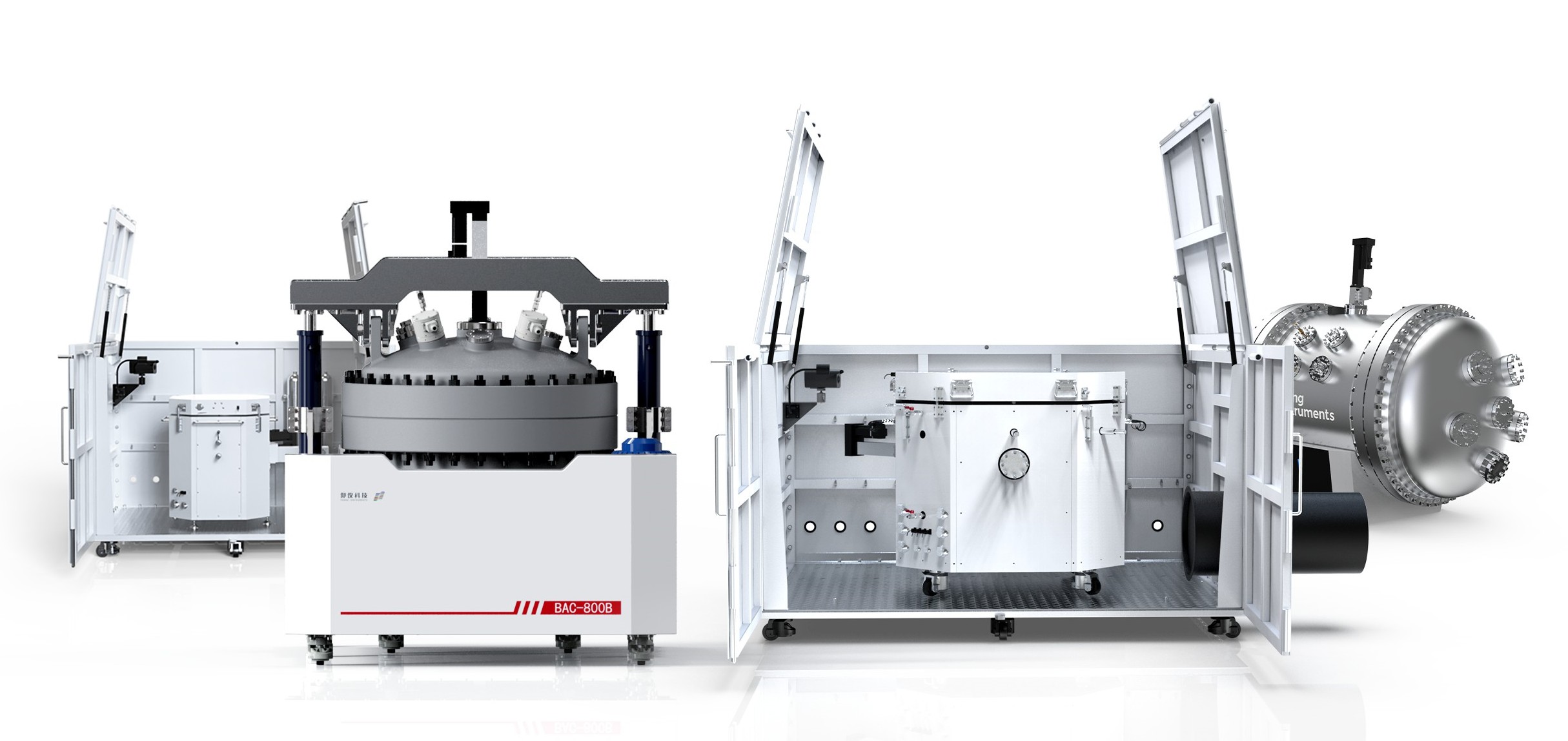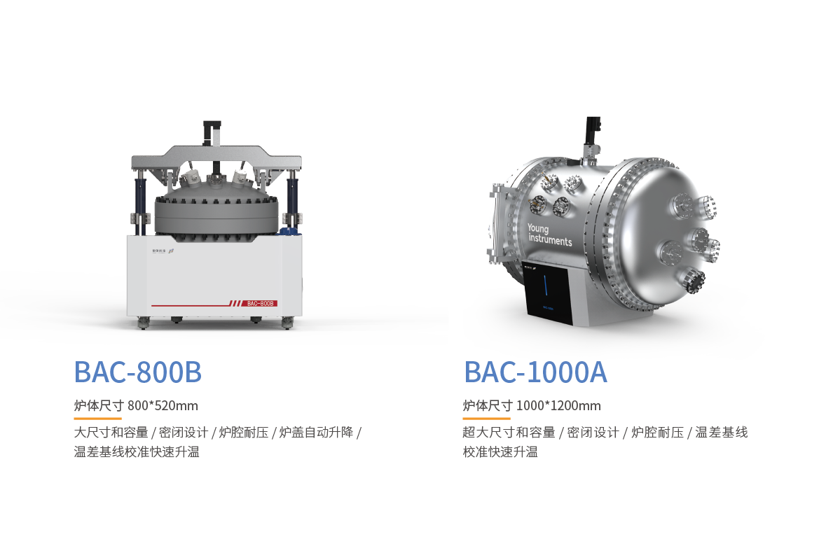 產(chǎn)品型號包含BAC-800B和BAC-1000A,密閉型爐腔完全按照GB/150壓力容器設計規(guī)范進行開發(fā),可持續(xù)承壓2MPa,同時具有優(yōu)異的密封性,創(chuàng)造性地將定容燃燒彈和ARC功能合二為一,無需配置密封罐即可同步完成大尺寸、大容量電芯熱失控特征溫度及產(chǎn)氣測試,進一步提高試驗的效率和可靠性。另外,通過腔體可調(diào)式泄壓設計,解決了國外某廠商絕熱儀器存在的腔體和電池表面溫差大,絕熱性能不佳的問題。