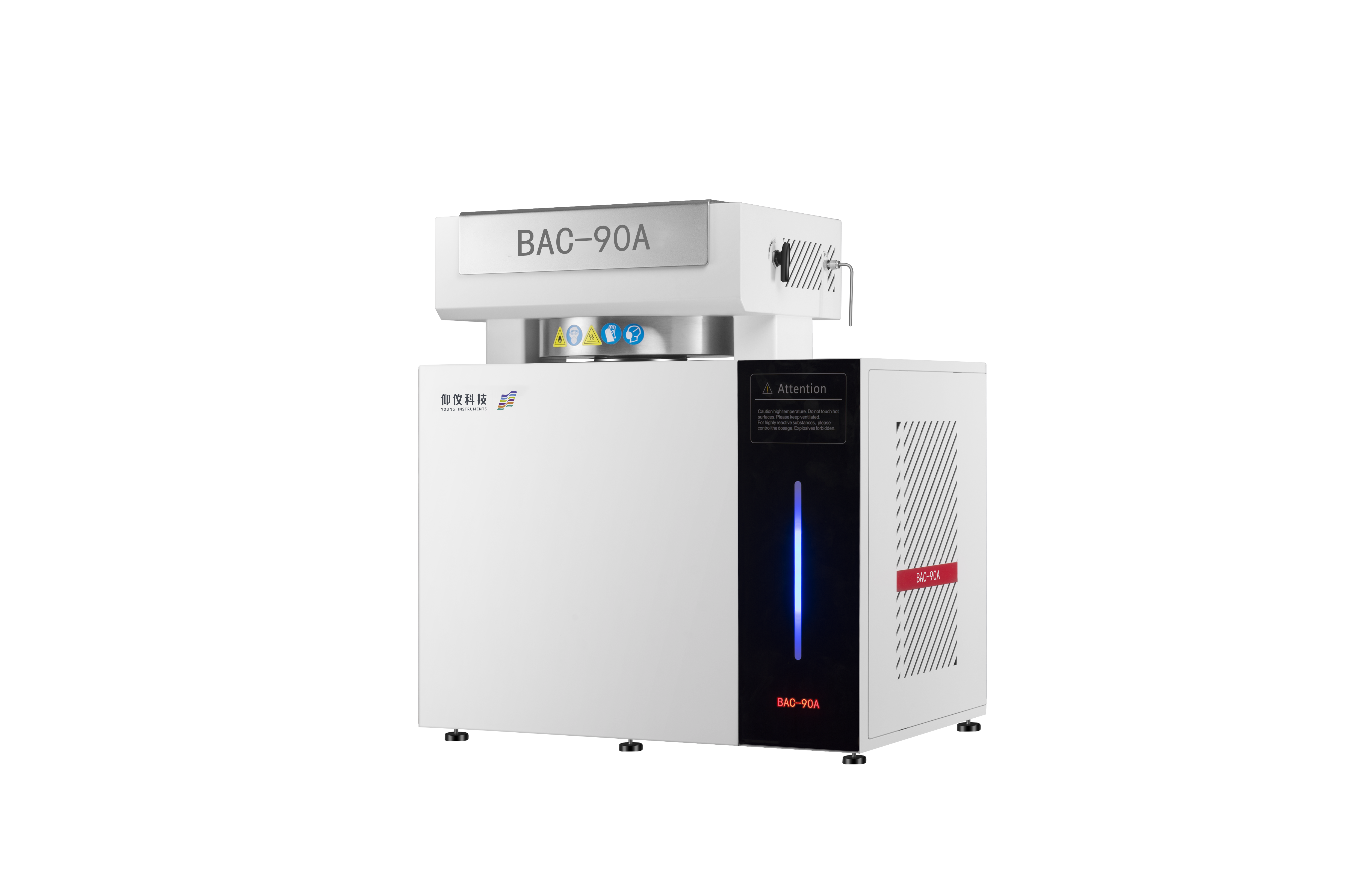 產(chǎn)品型號包含BAC-420A、BAC-420B和BAC-800A,保留了經(jīng)典ARC使用習慣。儀器結構總體分為絕熱腔體、抗爆箱與電控系統(tǒng)三部分。泄壓型系列具備優(yōu)異的多重安全防護能力,利用彈簧鎖設計,當內(nèi)部壓力過高時爐蓋可彈起進行快速泄壓,同時腔體內(nèi)部安裝爆破片進行防護??贡涫褂脵C械安全聯(lián)鎖裝置,鋼板厚度 3.5mm,并安裝大流量排風系統(tǒng)確保實驗安全。