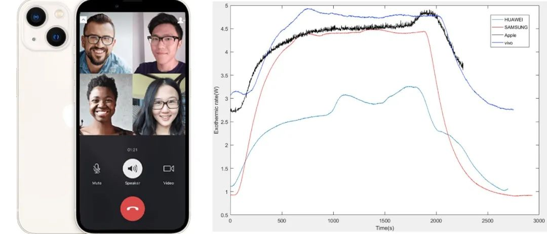 本文利用等溫量熱儀對(duì)智能手機(jī)的發(fā)熱行為進(jìn)行了研究,測(cè)定了不同品牌的手機(jī)在典型使用場(chǎng)景下的實(shí)時(shí)發(fā)熱功率。