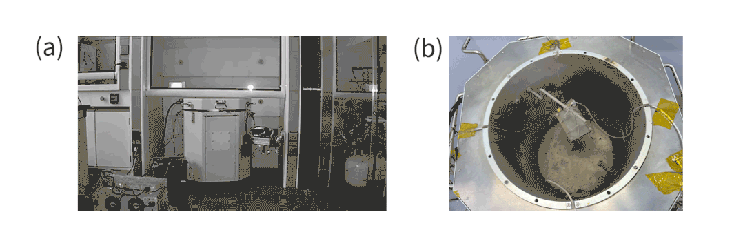 圖3 樣品鋰電池(a)熱失控視頻及(b)實驗后腔體照片