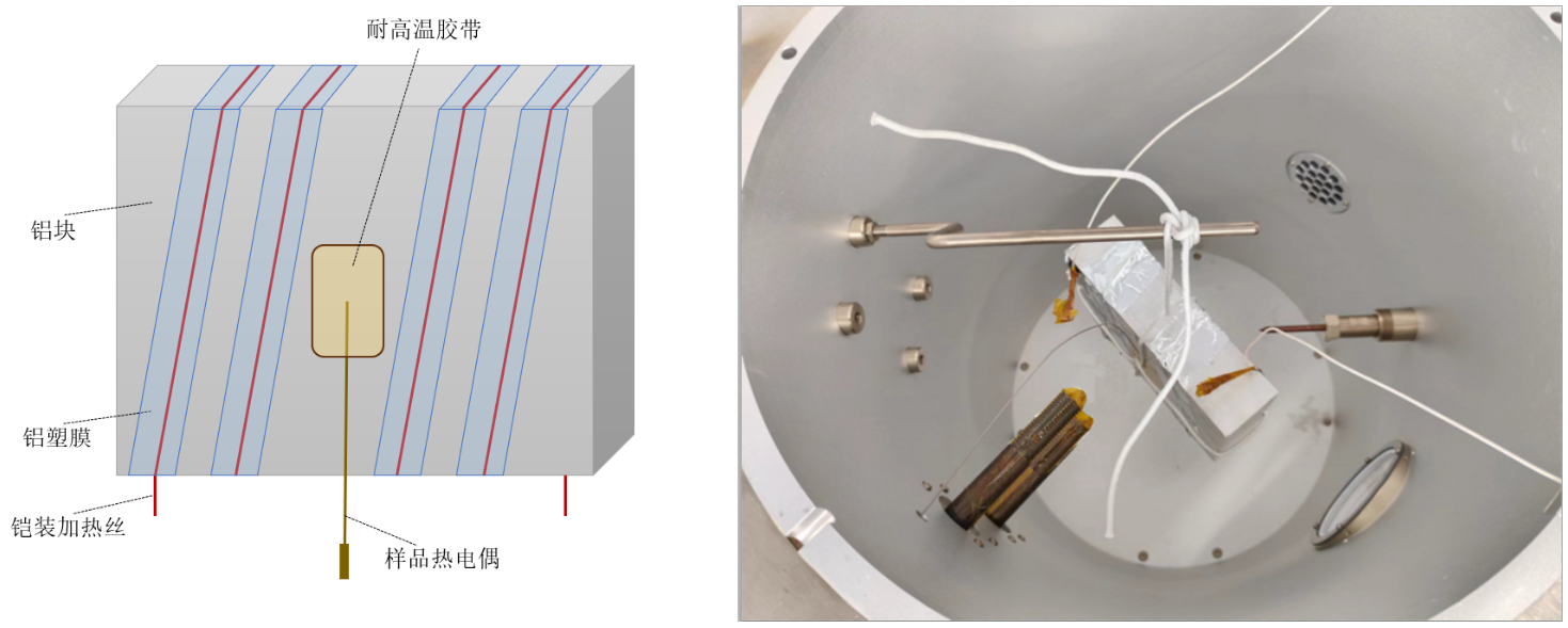 校準(zhǔn)實(shí)驗(yàn)所需時(shí)長與樣品質(zhì)量相關(guān)。280Ah磷酸鐵鋰電芯等大型電芯所需時(shí)間較長,可能達(dá)到3-5天甚至1周以上,極大拖延了實(shí)驗(yàn)進(jìn)度?;谏鲜鰡栴},本文提出加熱絲輔助加熱的溫差基線實(shí)驗(yàn)方案,在樣品表面纏繞加熱絲,并利用加熱絲加熱縮短樣品升溫時(shí)間,能夠大幅降低溫差基線實(shí)驗(yàn)時(shí)長,顯著提升實(shí)驗(yàn)效率。