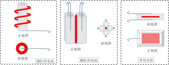 GB/T 36276-2018和 UL 9540A:2018觸發(fā)電芯熱失控的方法均為加熱法[2]。UL 1973:2018除采用外部加熱法外,提供了多種觸發(fā)熱失控方法,包括內(nèi)部缺陷類:導(dǎo)電污染物、隔膜破壞、內(nèi)部加熱器;外部應(yīng)力類:外部加熱器、擠壓機(jī)制、針刺、短路、過充。