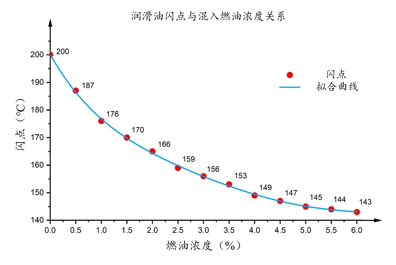 本文模擬船舶發(fā)動機(jī)潤滑油受燃油污染的場景,使用FP CC-420A微量連續(xù)閉口閃點(diǎn)儀對潤滑油/柴油混合物的閃點(diǎn)進(jìn)行測試,通過測試結(jié)果建立潤滑油稀釋-閃點(diǎn)模型,可用于判斷潤滑油受污染程度。同時(shí),該方法樣品量小、測試時(shí)間短、安全性高,滿足輪船行駛過程中的使用要求。