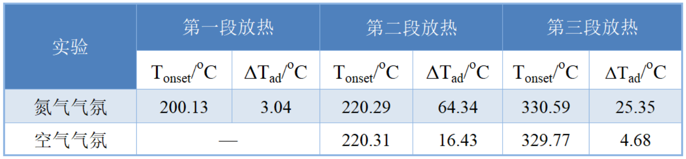 表1氮氣和空氣氣氛樣品絕熱數(shù)據(jù)對比