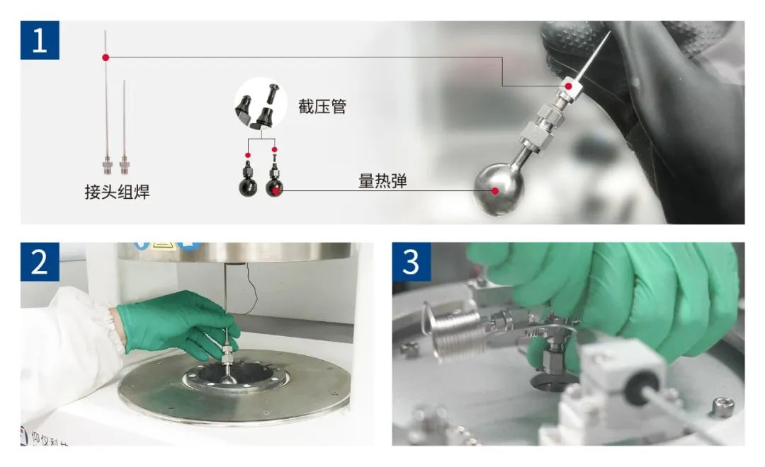 (2) 將熱電偶插入量熱彈的盲孔內,隨后將接頭組焊從爐蓋底部穿過陶瓷纖維保溫層;