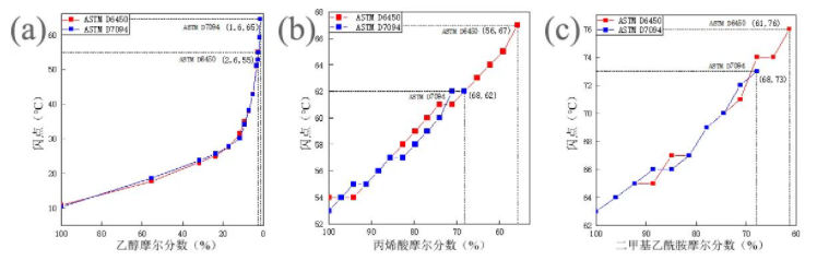 可燃性液體水溶液的閃點隨稀釋程度單調上升,而閃點可檢測濃度范圍取決于純物質揮發(fā)性與易燃性,同時又受到檢測方法的影響。