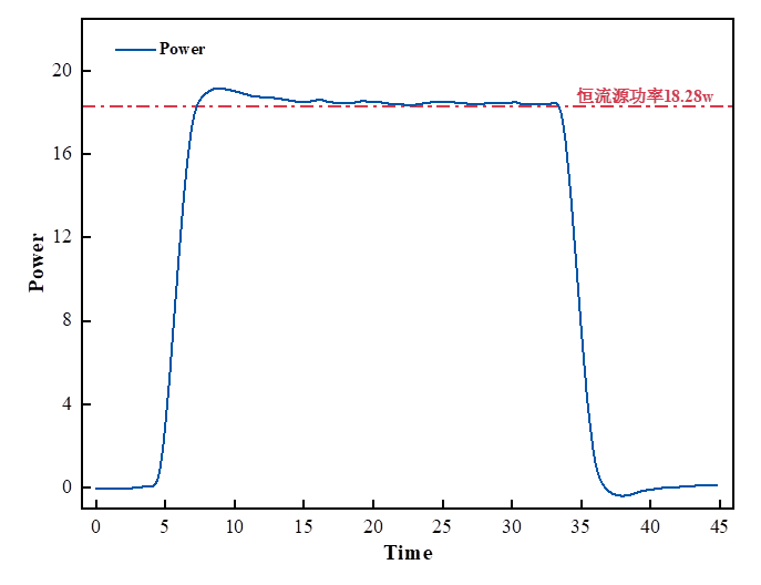 恒流源控制電阻塊輸出恒定功率或者程序改變功率輸出(參考電池真實充放電產(chǎn)熱曲線),隨后將測量值與輸入值進行對比,獲得儀器測量準確性驗證結(jié)果。